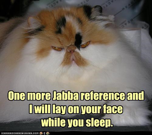 One more Jabba reference and I will lay on your face while you sleep.