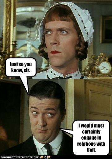 Just so you know, sir. I would most certainly engage in relations with that. -Hugh Laurie, Stephen Fry