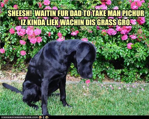 SHEESH! WAITIN FUR DAD TO TAKE MAH PICHUR IZ KINDA LIEK WACHIN DIS GRASS GRO.