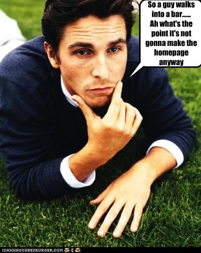 So a guy walks into a bar......Ah what's the point it's not gonna make the homepage anyway -Christian Bale