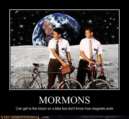 MORMONS Can get to the moon on a bike, but don't know how magnets work.