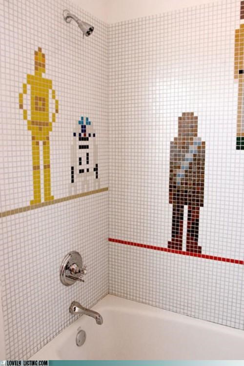 I'd be fine with Han Solo in my shower, but I'm not so sure about the others. Chewie would have to promise to clean the drain out regularly.