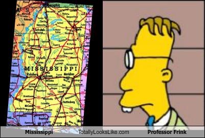 Mississippi Totally Looks Like Professor Frink Is Mississippi making its way through the entire cast of "The Simpsons" one character at a time?
