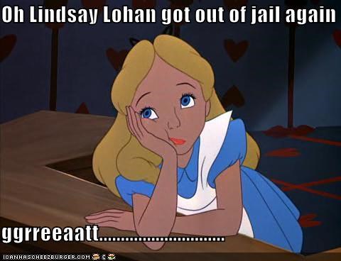Oh Lindsay Lohan got out of jail again ggrreeaatt....... -Alice in Wonderland