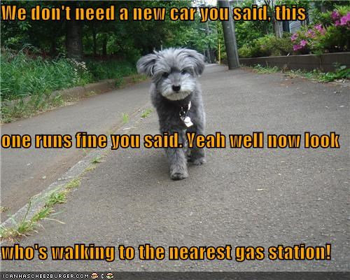 We don't need a new car you said, this one runs fine you said. Yeah well now look who's walking to the nearest gas station!