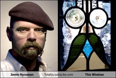 Jamie Hyneman Totally Looks Like This Window This look-alike has been CONFIRMED by our look-alike experts. They wear white lab coats and smell like vending machine foodstuffs, so you know their shizznit is OFFICIAL.