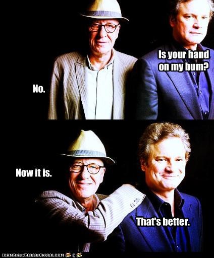 Is your hand on my bum? No. Now it is. That's better. -Geoffrey Rush, Colin Firth