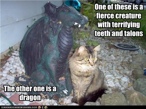 One of these is a fierce creature with terrifying teeth and talons The other one is a dragon