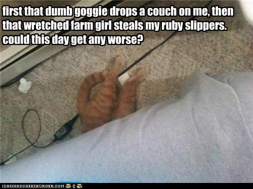 first that dumb goggie drops a couch on me, then that wretched farm girl steals my ruby slippers. could this day get any worse?