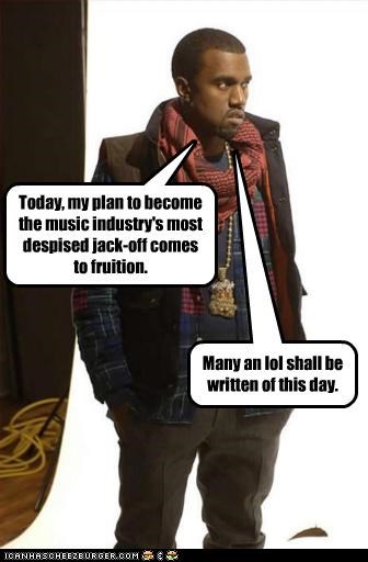 Today, my plan to become the music industry's most despised jack-off comes to fruition. Many a lol shall be written of this day. -Kanye West