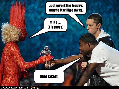 Just give it the trophy, maybe it will go away. Mine...Here take it. -