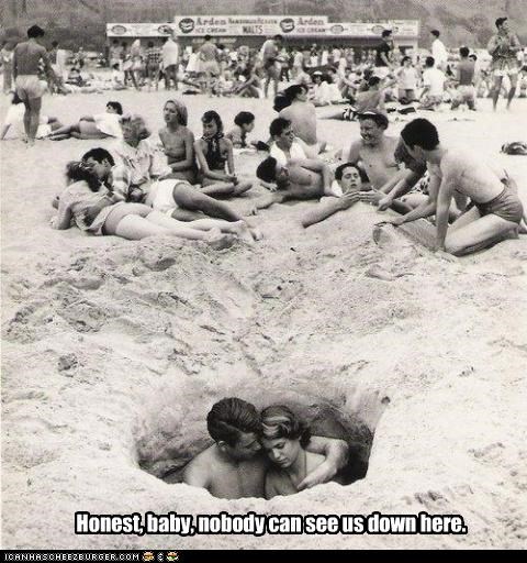 Honest, baby, nobody can see us down here.