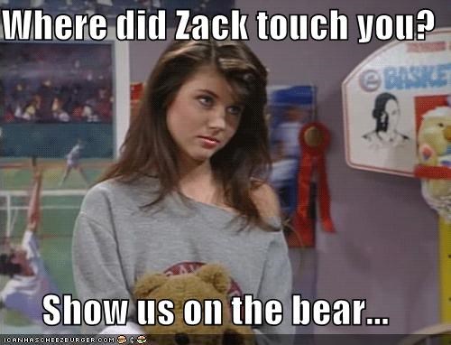 Where did Zack touch you? Show us on the bear... -Tiffani Amber Thiessen