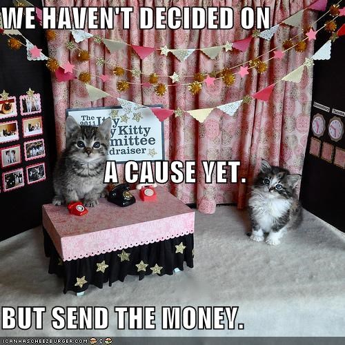 WE HAVEN'T DECIDED ON A CAUSE YET. BUT SEND THE MONEY.