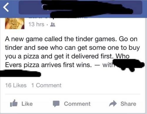 Guys have been falling for this kind of thing for basically all of human history, but this just may be a new low. "Buy me a pizza" is the new "buy me a drink."
