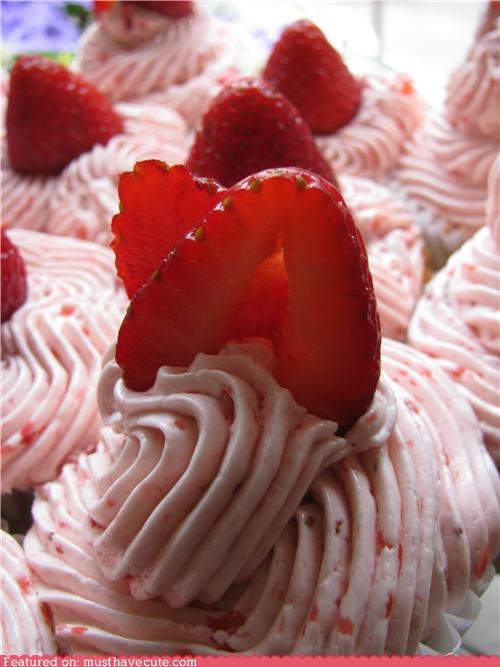 I like the move to include bits of real strawberries in the frosting on these cupcakes. I bet it's light and fluffy and not too sweet and has just the right little tart edge. If I drool on my keyboard one more time it's gonna break again.