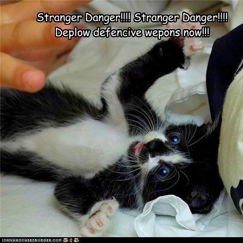 Stranger Danger!!!! Stranger Danger!!!! Deplow defencive wepons now!!!