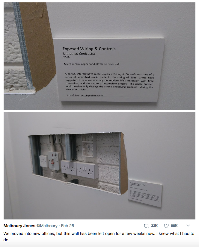 Guy Tweets "Art Gallery" Captions of Unfinished Work In His Office, Turns Out He Is Not Alone