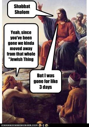Shabbat Shalom yeah, since you've been gone we kinda moved away from that whole "Jewish" thing. But I was gone for like 3 days
