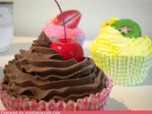 Gaze upon the most realistic fake cupcakes ever! That fake cherry is just BEGGING me to try and eat it!