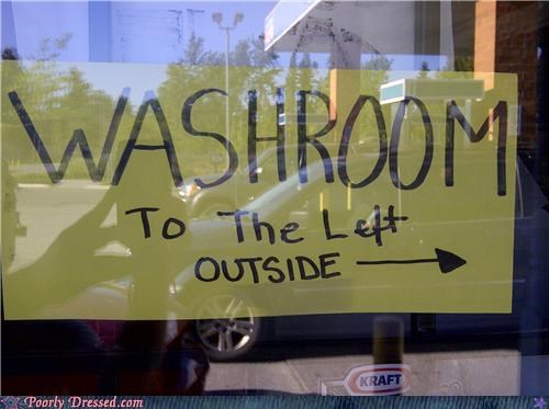 The washroom might be to the left, but we suggest going to the right. You don't want to go in there.