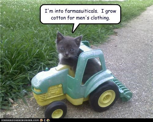 I'm into farmasuiticals. I grow cotton for men's clothing.