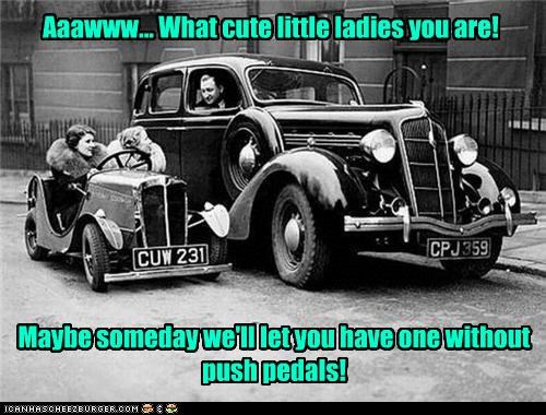 Aaawww...what cute little ladies you are! Maybe someday we'll let you have one without push pedals!
