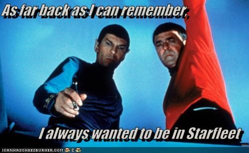 As far back as I can remember, I always wanted to be in Starfleet. -Leonard Nimoy, James Doohan