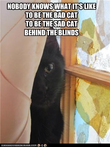 NOBODY KNOWS WHAT IT'S LIKE TO BE THE BAD CAT TO BE THE SAD CAT BEHIND THE BLINDS