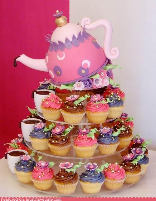As an American, I'm not super familiar with the traditional high tea ritual. Once for a bachelorette party I had tea at the Bellagio with a bunch of fancy ladies. We had champagne and lots of tiny delicious foods. This cake would have been a gaudy yet not unwelcome addition.