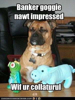 Banker goggie nawt impressed wif ur collaturul