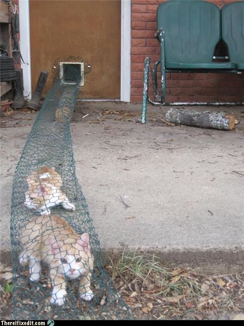 Little do they know, tunnels are much more effective when they are a) underground and b) not transparent. Good first attempt, kitties, but better luck next time. ~NSHA