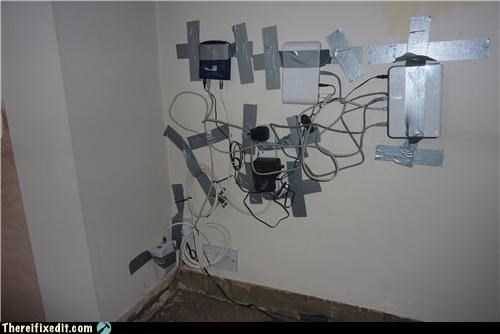 You know what? Let's just leave it up there and call it modern art. It's a metaphor for... the rising toll over-connectivity has had on our society. Yes, that's what it is.