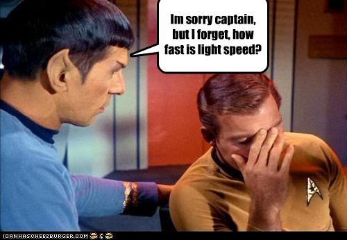 I'm sorry captain, but I forget, how fast is light speed? -Leonard Nimoy, William Shatner