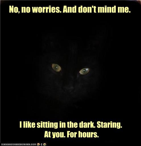 No, no worries. And don't mind me. I like sitting in the dark. Staring. At you. For hours.