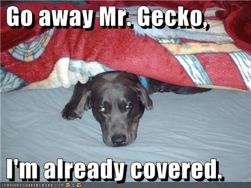 Go away Mr. Gecko, I'm already covered.