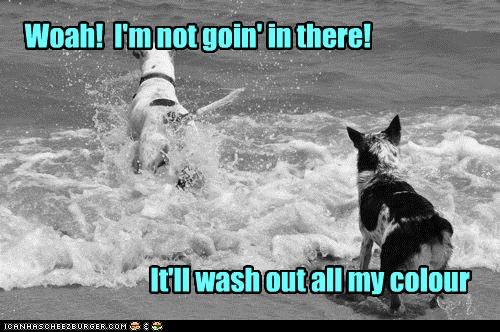 Woah! I'm not goin' in there! it'll wash out all my colour