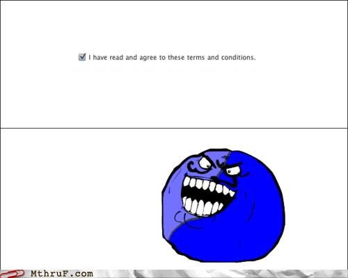 I'm not a lawyer, but if you really read the terms and conditions, then shouldn't you have the right to also make small changes and stipulations, and at the VERY LEAST require some clarifications. At least the AGREE button should be hidden away somewhere in the terms or the conditions so that you'd have to read thru it to find it. Ease that kind of pain from you monday with these Monday Memes and just appreciate that you have a whole week worth of this to look forward to before something resembling what you want to do is available and by that we mean weekend.