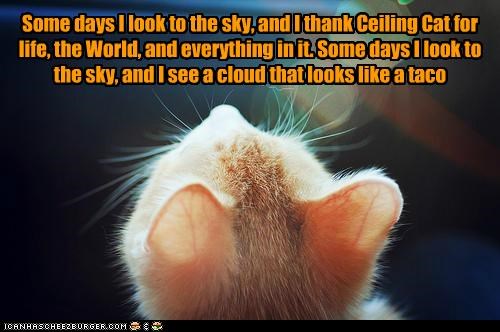 Some days I look to the sky, and I thank Ceiling Cat for life, the World, and everything in it. Some days I look to the sky, and I see a cloud that looks like a taco