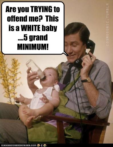 Are you TRYING to offend me? This is a WHITE baby ....5 grand MINIMUM!