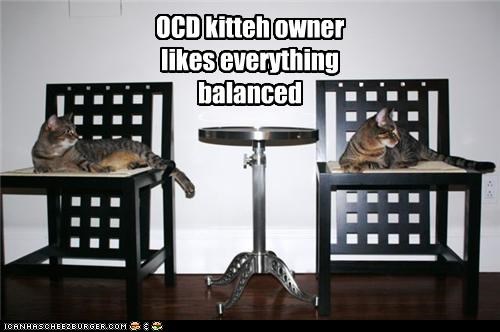 OCD kitteh owner likes everythingbalanced
