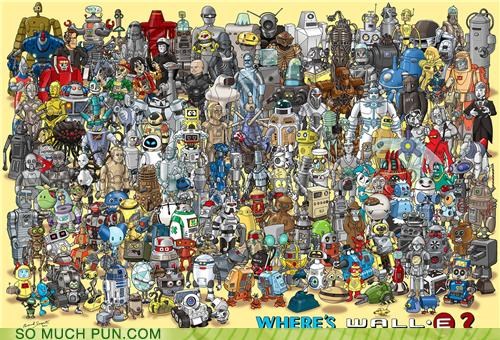 I mean, couldn't the robots just run some complicated algorithm to pinpoint Wall-E's location on every page? Kinda takes the fun out of it, don't you think? - Matty Malaprop