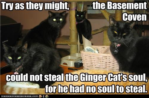Try as they might, the Basement Coven could not steal the Ginger Cat's soul, for he had no soul to steal.