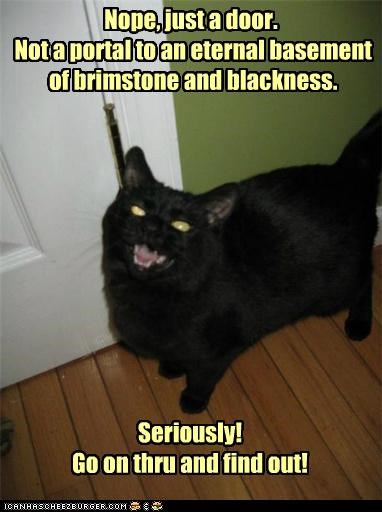 Nope, just a door. Not a portal to an eternal basement of brimstone and blackness. Seriously! Go on thru and find out!