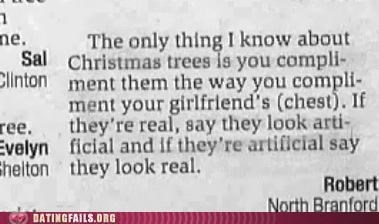 Some interesting input, but I'm not sure many ladies like to hear "Nice rack! It looks totally fake!"
