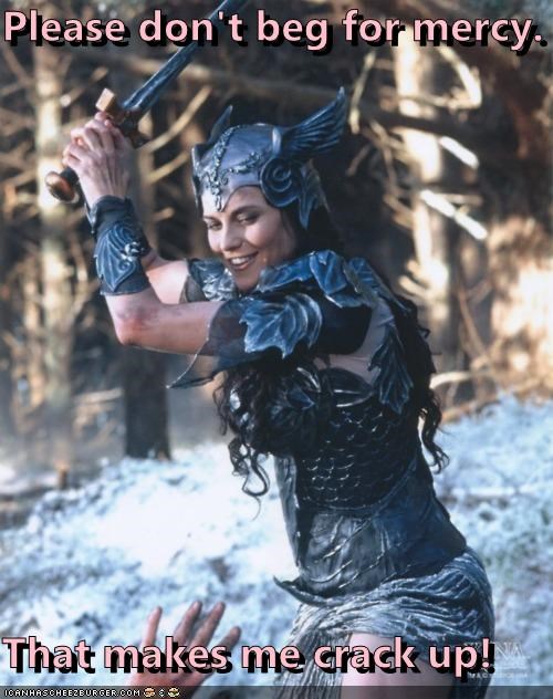 Please don't beg for mercy. That makes me crack up! -Lucy Lawless