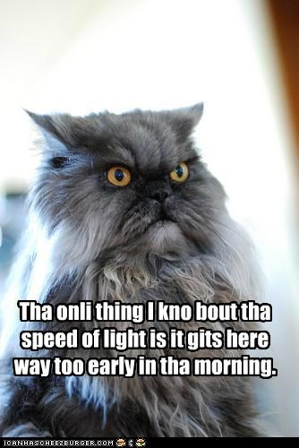 Tha onli thing I kno bout tha speed of light is it gits here way too early in tha morning.