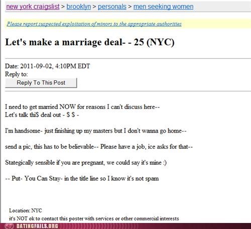 Remember, single ladies: there's nobody quite as desperate for marriage as a man whose visa is about to expire!