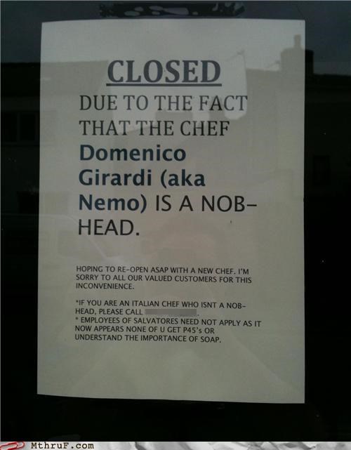 The owner clearly doesn't want people to eat at his restaurant. ~OLJ