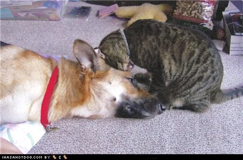 How a tiny sweet kitten goes from being scared of to loving and cuddling with a super excited, energetic puppy